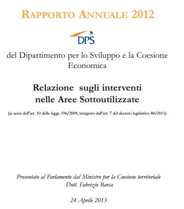 Il 24 aprile 2013 è stato presentato in Parlamento il Rapporto Annuale 2012 sugli interventi nelle aree sottoutilizzate, giunto alla sua quindicesima edizione.