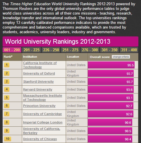 ECCO LA CLASSIFICA DELLE MIGLIORI 400 UNIVERSITA’ NEL MONDO. C’è anche qualche italiana ….. Pubblicato da:Rino Scoppio 26 agosto 2013 — Lascia un commento Ecco la classifica completa: http://www.timeshighereducation.co.uk/world-university-rankings/2012-13/world-ranking Condividi questo articolo sui Social NetworkTweet Fai clic per condividere su Youtube (Si apre in una nuova finestra) Youtube Fai clic per condividere su Flickr (Si apre in una nuova finestra) Flickr Fai clic per condividere su Pinterest (Si apre in una nuova finestra) Pinterest Fai clic per condividere su Slideshare (Si apre in una nuova finestra) Slideshare Fai clic per condividere su Google + (Si apre in una nuova finestra) Google + Mi piace Caricamento... Correlati