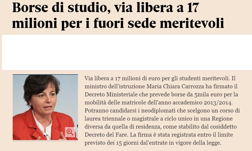 “….Via libera a 17 milioni di euro per gli studenti meritevoli.