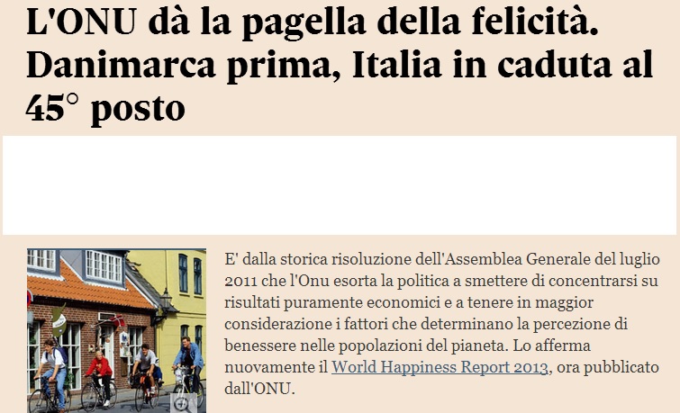 “….Il World Happiness Report 2013 pubblicato dall’ONU è uno studio di 156 pagine ed è il secondo finora realizzato su un corpus di oltre 150 Paesi.