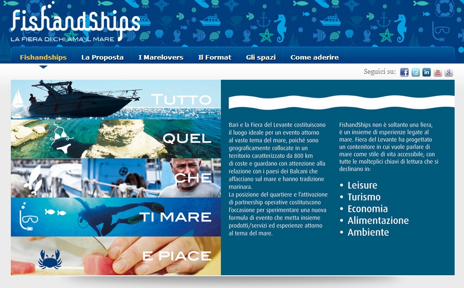 Bari, 3-6 APRILE 2014 La fiera dedicata all’ECONOMIA DEL MARE Leggi i dettagli del nuovo progetto Pubblicato da:Rino Scoppio 26 settembre 2013 — Lascia un commento E’ un progetto molto interessante. Ecco i dettagli: http://www.fieradellevante.it/index.php?option=com_content&view=article&id=507%3Afishandships-la-fiera-di-chi-ama-il-mare&catid=177&Itemid=784&lang=it Condividi questo articolo sui Social NetworkTweet Fai clic per condividere su Youtube (Si apre in una nuova finestra) Youtube Fai clic per condividere su Flickr (Si apre in una nuova finestra) Flickr Fai clic per condividere su Pinterest (Si apre in una nuova finestra) Pinterest Fai clic per condividere su Slideshare (Si apre in una nuova finestra) Slideshare Fai clic per condividere su Google + (Si apre in una nuova finestra) Google + Mi piace Caricamento... Correlati