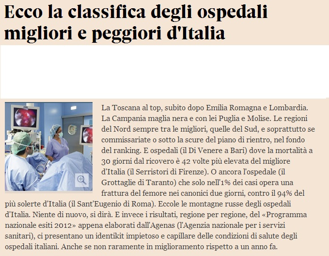 Per scaricare i dati completi relativi ai singoli ospedali bisogna iscriversi gratuitamente al sito dell’AGENAS.