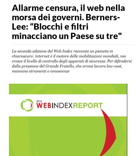 Al di là di tutto, il Web Index dà l’idea del livello di censura subito dall’utenza delle singole nazioni.