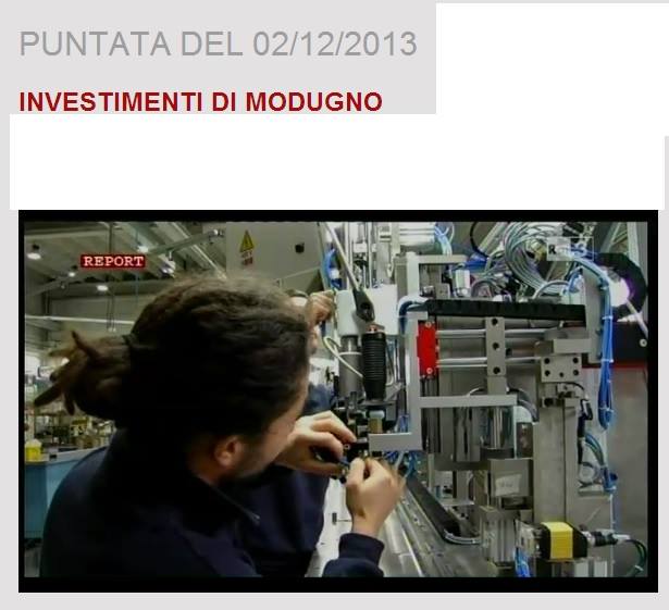 PER CHI SI E’ PERSO LA PUNTATA DI IERI SULLA MECCATRONICA PUGLIESE Report, Rai 3 – 2 dicembre 2013 Pubblicato da:Rino Scoppio 5 dicembre 2013 — Lascia un commento Ecco il servizio di Report: http://www.report.rai.it/…/ContentItem-bc21d88e-318e… Condividi questo articolo sui Social NetworkTweet Fai clic per condividere su Youtube (Si apre in una nuova finestra) Youtube Fai clic per condividere su Flickr (Si apre in una nuova finestra) Flickr Fai clic per condividere su Pinterest (Si apre in una nuova finestra) Pinterest Fai clic per condividere su Slideshare (Si apre in una nuova finestra) Slideshare Fai clic per condividere su Google + (Si apre in una nuova finestra) Google + Mi piace Caricamento... Correlati