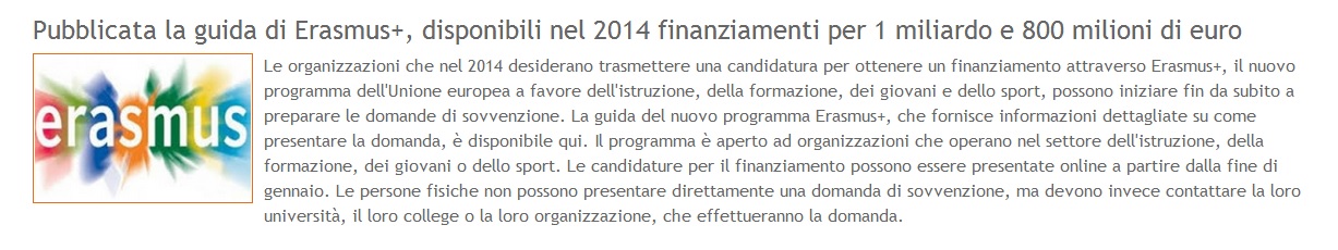 Nel 2014 Erasmus+ disporrà complessivamente di 1 miliardo e 800 milioni di euro per finanziamenti volti a: