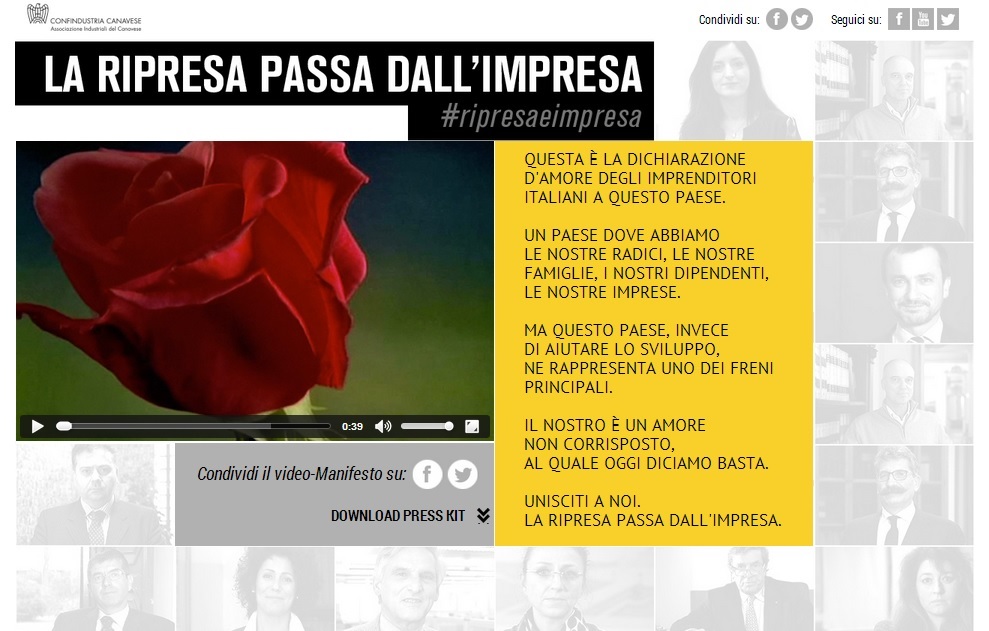 Ogni imprenditore potrà realizzare un video di 30 secondi e inserirlo sul sito, per raccontare cosa non va in Italia e dare, come dice lo stesso Testa, “una scossa, non distruttiva come quella dei forconi, ma con amore”.