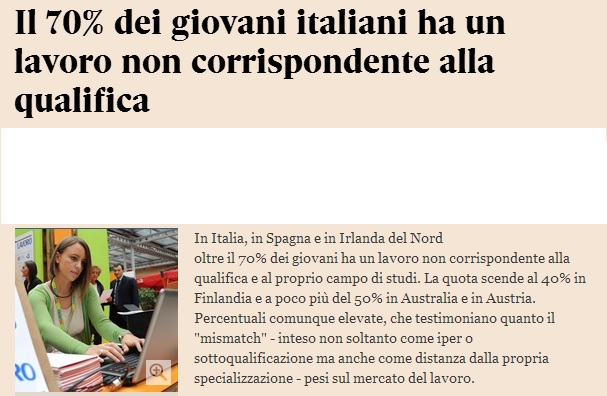 In Italia, in Spagna e in Irlanda del Nord oltre il 70% dei giovani ha un lavoro non corrispondente alla qualifica e al proprio campo di studi.