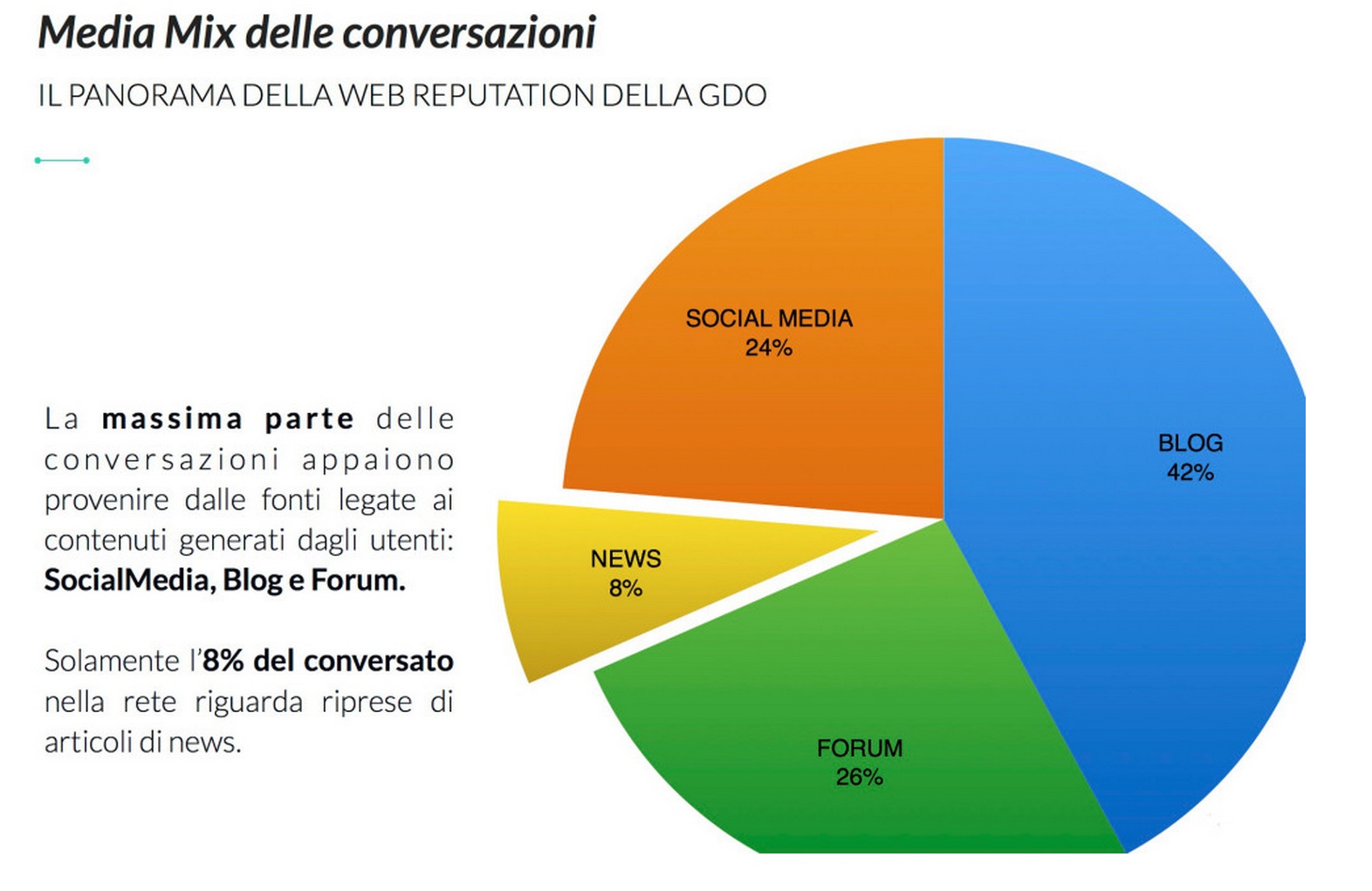 Gli utenti della Rete usano per informarsi e commentare i prodotti di Marca Privata i Social Network (24%), i Forum (26%) e ruolo fondamentale ancora una volta è rappresentato dai Blog (42%) mentre solo una esigua parte (8%) utilizza le news tradizionali come fonte informativa.