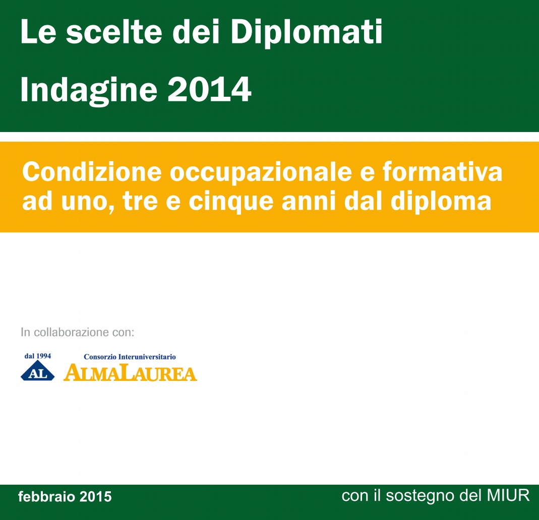 Il nuovo Rapporto sulla condizione occupazionale e formativa dei diplomatidi scuola secondaria superiore, realizzato da AlmaDiploma e da AlmaLaurea, traccia l’identikit di 90 mila diplomati del 2013, 2011 e 2009 intervistati a uno, tre e cinque anni dal conseguimento del diploma, appartenenti a 350 Istituti di scuola secondaria.
