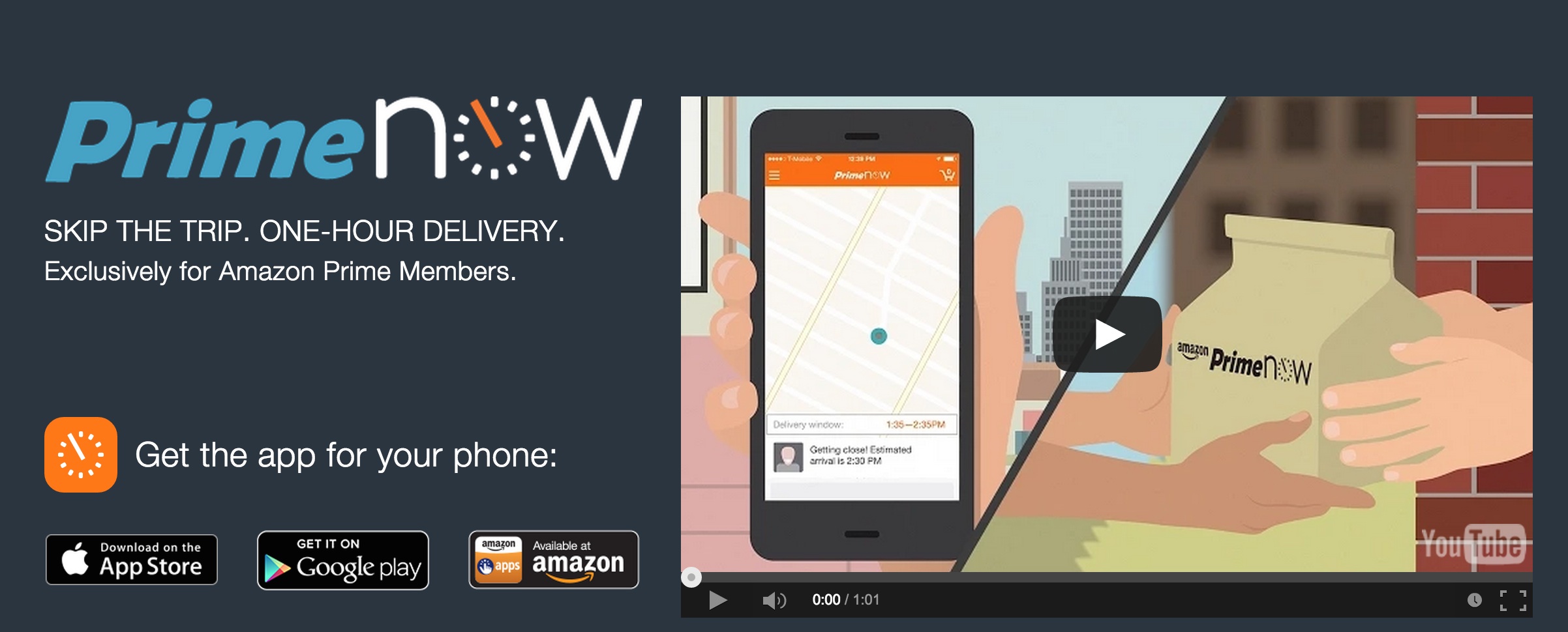 Amazon Prime Now permette di ricevere il proprio ordine entro un’ora dal momento di pagamento.