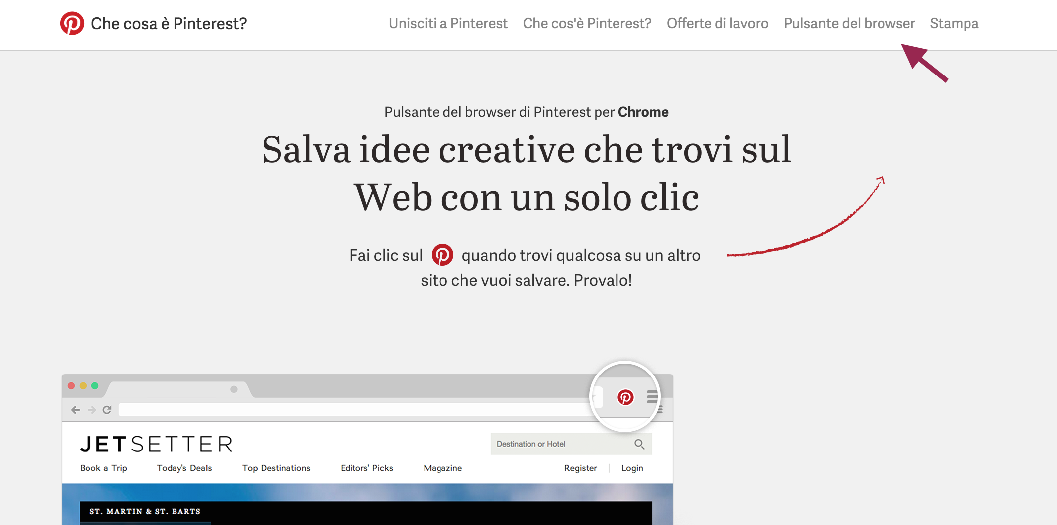 CONDIVIDI FACILMENTE SULLA TUA PAGINA PINTEREST. Ecco come funziona il Pin It Button Pubblicato da:Rino Scoppio 30 aprile 201530 aprile 2015 — Lascia un commento Oggi è ancora più facile condividere i contenuti del web sulle tue bacheche Pinterest. E’ stato potenziato il Pin It Button per Chrome. https://www.youtube.com/watch?v=Ls11eo3CvUQ Vai su questa pagina e clicca in alto a destra su “PULSANTE DEL BROWSER” per inserire il bottone sul tuo computer. Condividi questo articolo sui Social NetworkTweet Fai clic per condividere su Youtube (Si apre in una nuova finestra) Youtube Fai clic per condividere su Flickr (Si apre in una nuova finestra) Flickr Fai clic per condividere su Pinterest (Si apre in una nuova finestra) Pinterest Fai clic per condividere su Slideshare (Si apre in una nuova finestra) Slideshare Fai clic per condividere su Google + (Si apre in una nuova finestra) Google + Mi piace Caricamento... Correlati