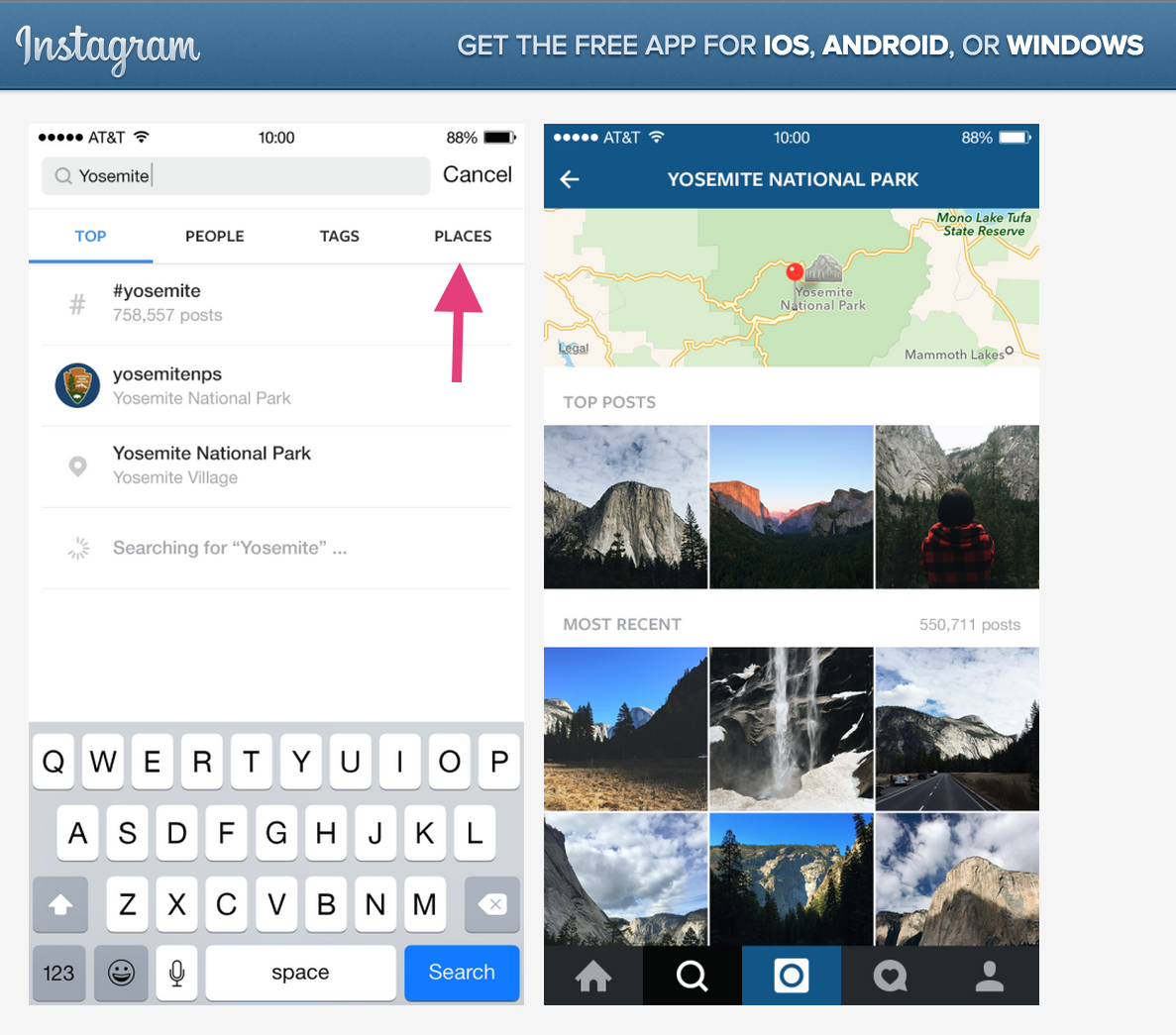 Il 23 giugno 2015 Instagram ha introdotto l’opzione di ricerca Places Search che consentirà di trovare le foto in base alla località.