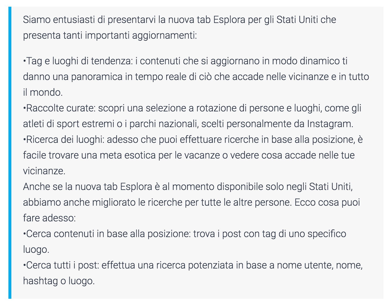 Dopo aver potenziato l’accesso al social da Desktop e aver introdotto le emoji nelle didascalie e negli hastag la direzione sembra sempre di più quella di rendere il social uno strumento di navigazione fra le notizie-fotografiche.