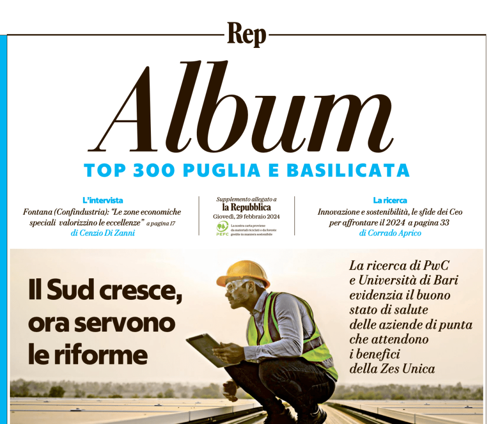 La ricerca Top 300 condotta da PwC e dal Dipartimento di Economia, management e diritto dell’impresa dell’Università di Bari si allarga per la prima volta alle aziende lucane.