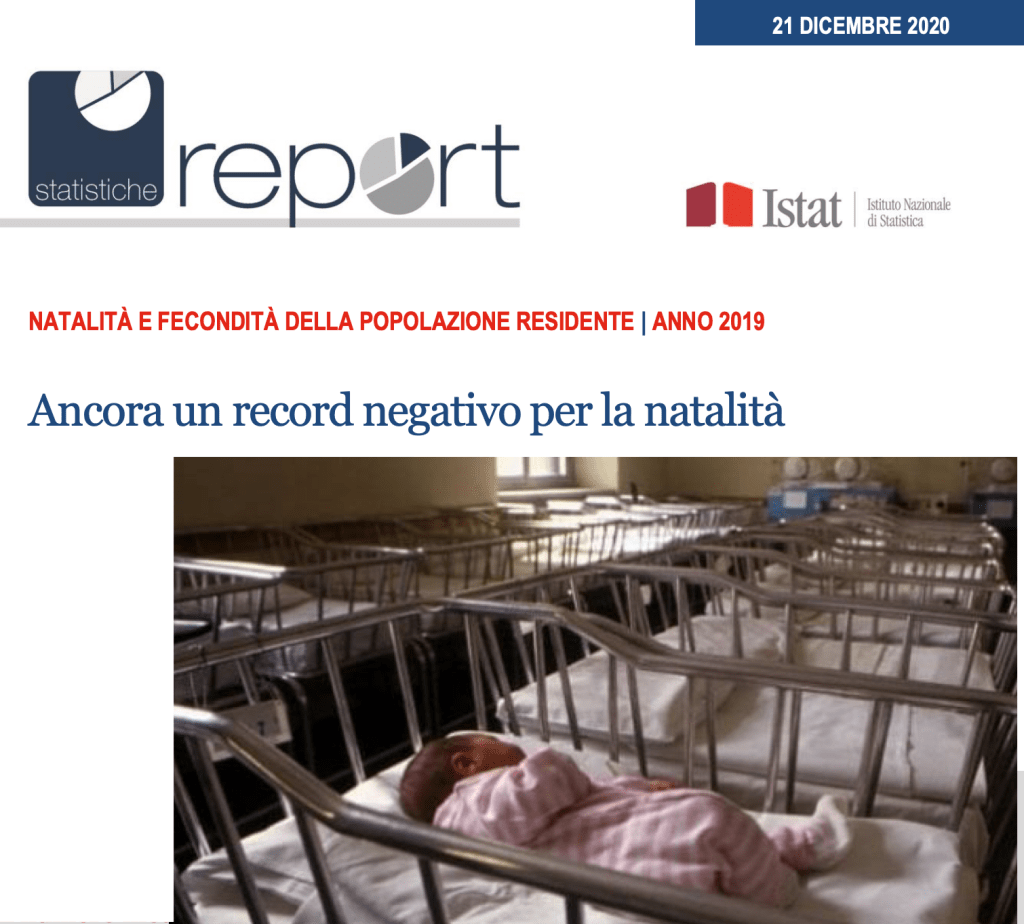 Rispetto all’anno precedente, si registra un nuovo minimo storico di nascite dall’unità d’Italia.