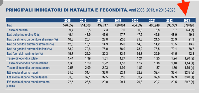 Nel 2022 i nati sono scesi, per la prima volta dall’unità d’Italia, sotto la soglia delle 400mila unità, attestandosi a 393mila.