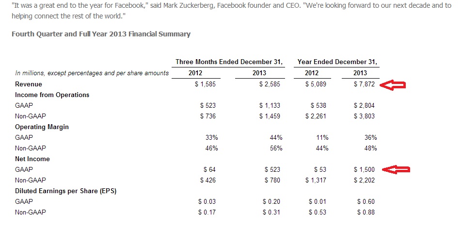 Facebook ha presentato il bilancio dell’anno 2013.